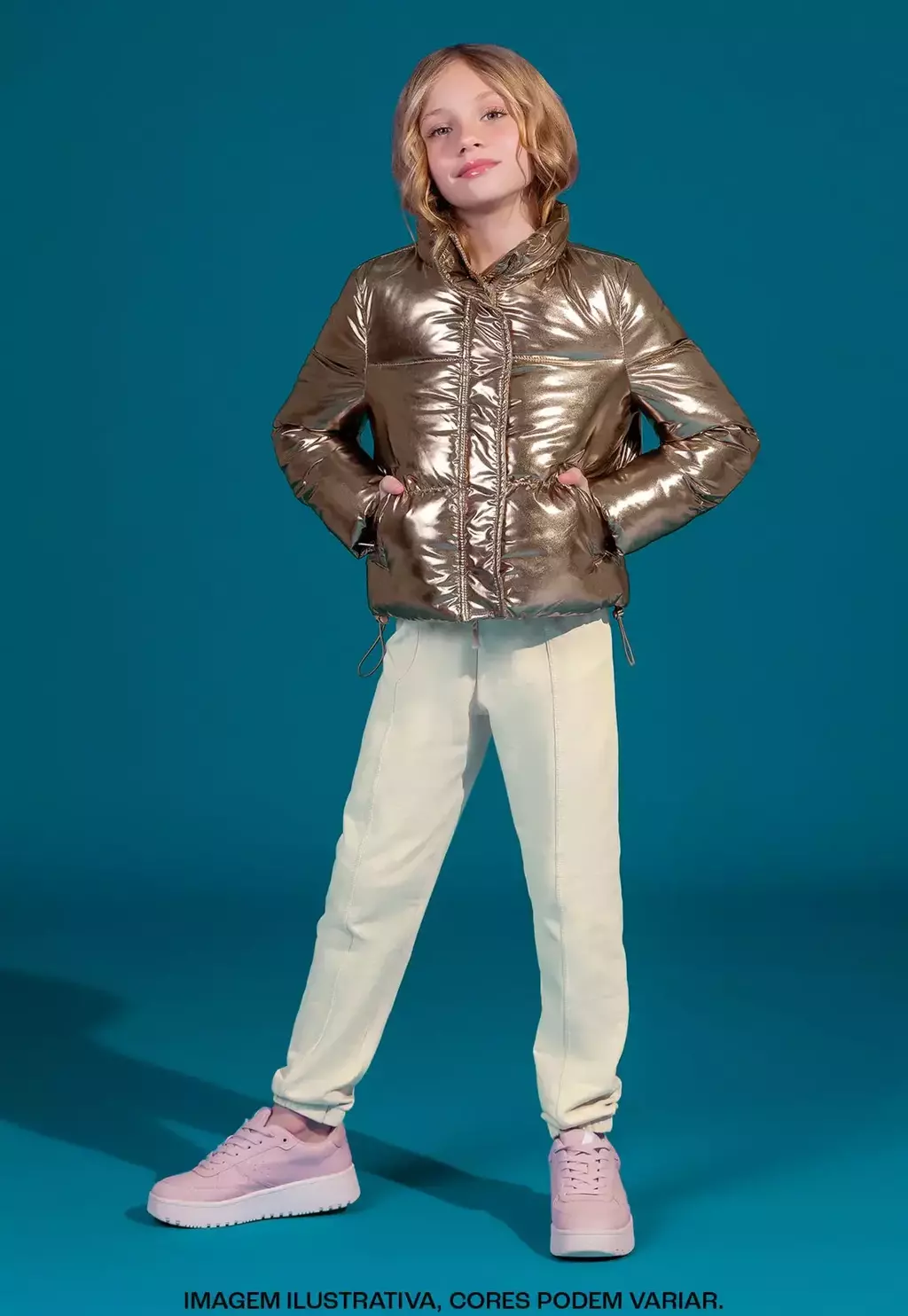 Cheia de estilo e brilho, essa jaqueta puffer é perfeita para as pequenas que amam se destacar! Com acabamento perfeito, ela garante um visual moderno, divertido e super quentinho. Ideal para os dias frios, a peça possui enchimento leve e confortável, bolsos frontais para esquentar as mãozinhas e fechamento com zíper frontal, além de gola alta que protege contra o vento.